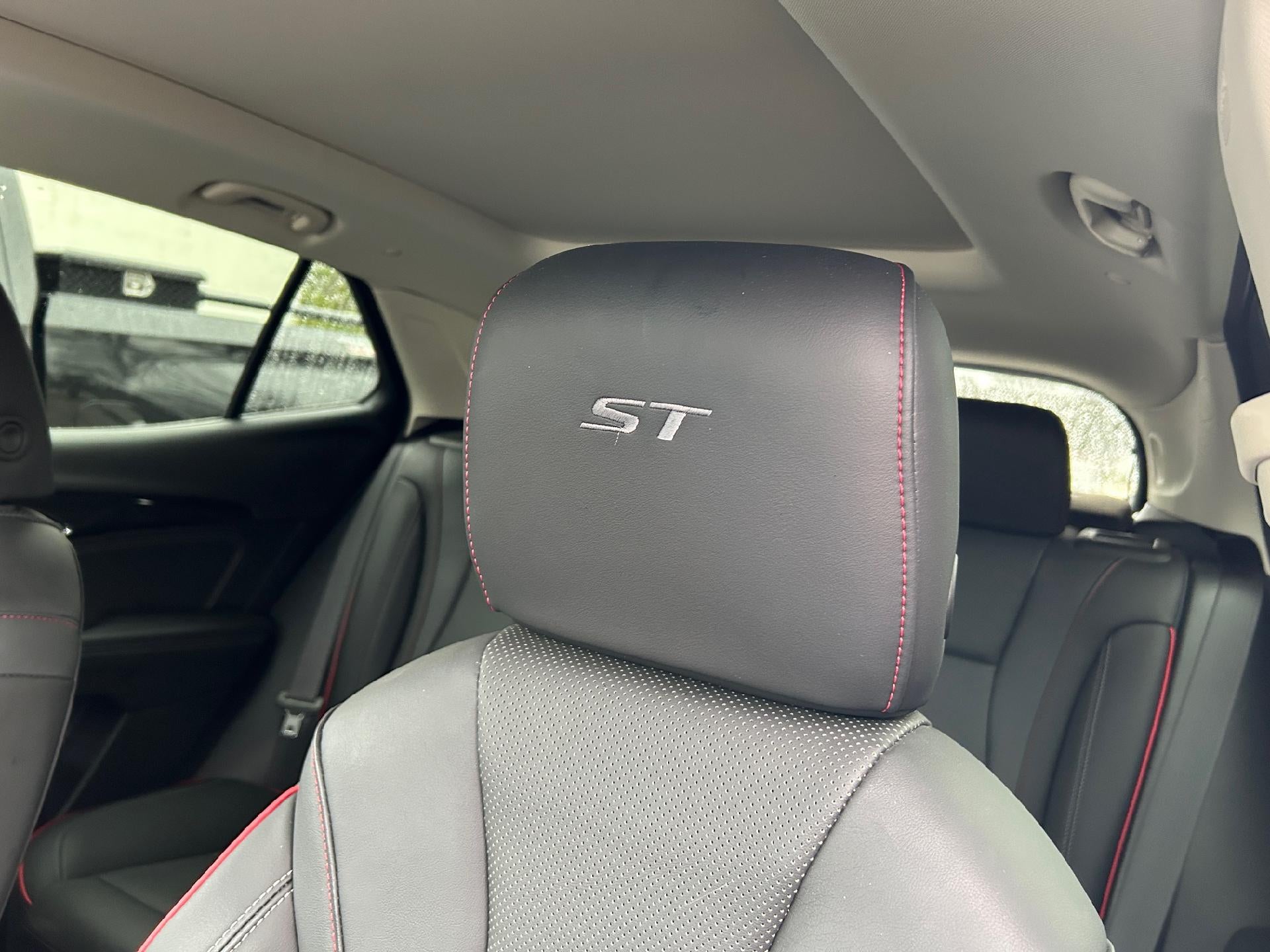 - Interior ST accents includes: ST logo on front head restraints and front floor mats (Red-stitching on the seats for Essence)